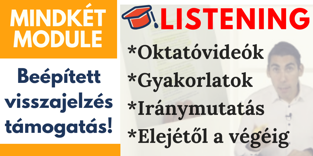 Ez a tanfolyam azért lett létrhozva, hogy a lehető legtöbbet kihozza belőled az IELTS hallás utáni szövegértés tekintetében. Pontsan megtanít Neked mindent az IELTS Listening Test-el kapcsolatban és órási mennyiségű gyakorlásra ad lehetőséget. Tanáraink mindvégig arra fókuszáltak ezen tanfolyam készítésénél, hogy szigorúan fejlessze a készség és képességedet nem megengedve, hogy beleugorj oyan gyakorlatokba melyeknek még nincs itt az ideje. Ez a tanfolyam nagyon sok tanulónak segített abban, hogy végre elérje azt az eredményt amire szüksége volt. Amikor azonban eljön az idő el fogsz kezdeni teszteket gyakorolni. Ez a tanfolyam nem játék. Ha valóban keményen megcsinálod és nem hagysz ki semmit drasztikusan fogja emelni az eredményed. Mindenkinek minden szinten ajánlott.