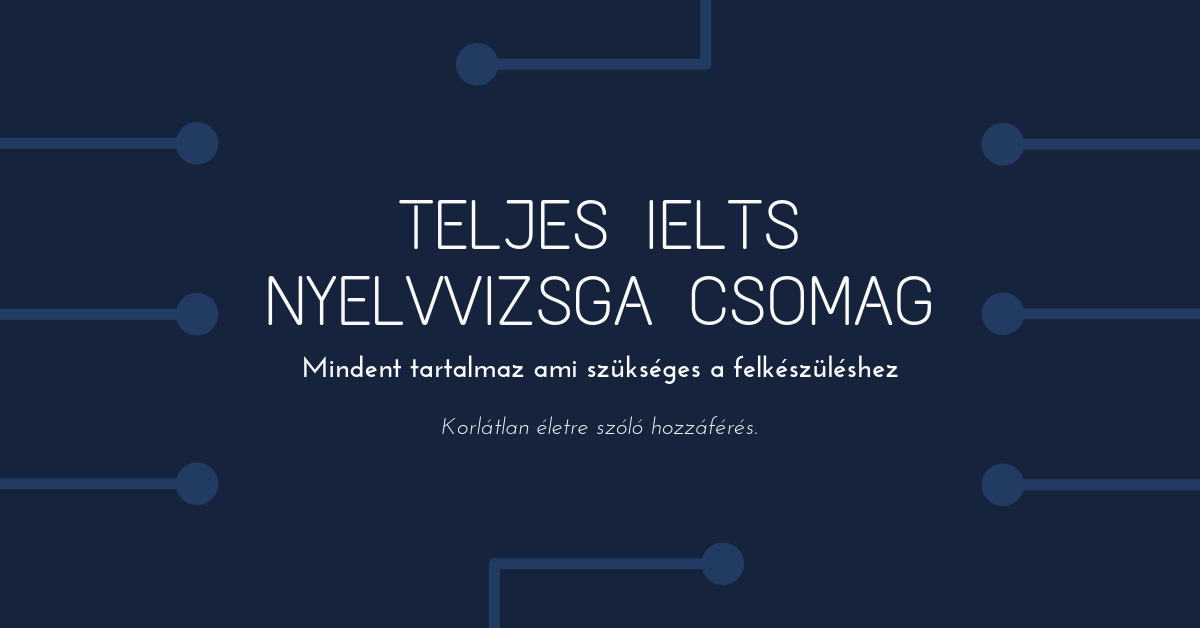 Ez a tanfolyam a TELJES IELTS NYELVVIZSGA CSOMAG része. Tejes hozzáférésed lesz ehhez és az összes Academic vagy General tanfolyamhoz.